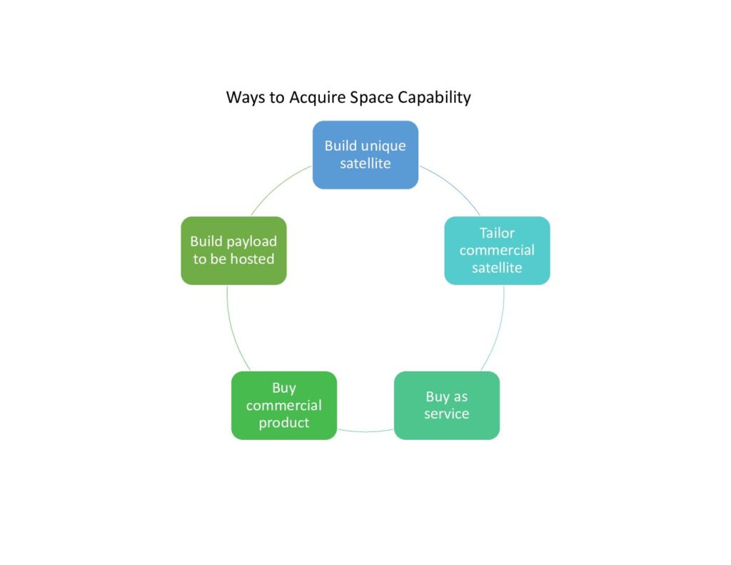 There are other ways to acquire space capabilities. For example, the government has been buying satellite imagery and leasing bandwidth from commercial providers for years. NASA is buying transportation services to take astronauts to the International Space Station from SpaceX.