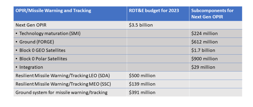 | Next Generation Missile Warning (OPIR)* | $8.4 billion |